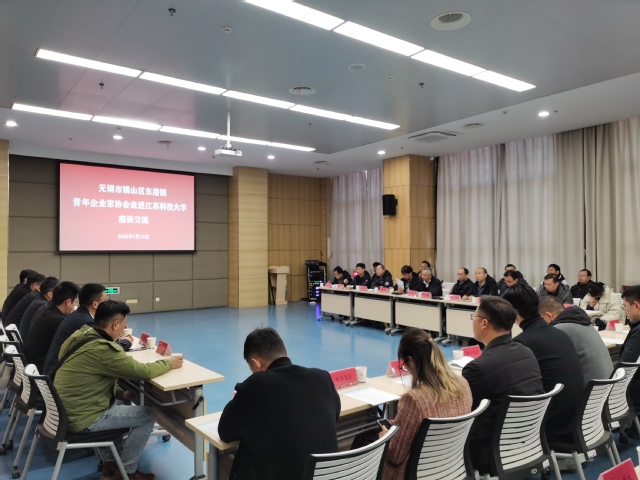 2026年1月13日上午,无锡市锡山区东港镇青年企业家协会一行走进江苏科技大学,开展校地校企交流活动。锡山区东港镇党委副书记许健、青年企业家协会会长杨怡炜以及近40家东港镇企业代表共同出席活动。党委常委、副校长叶永林出席会议并作讲话,会议由科学技术研究院副院长王庆丰主持。